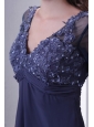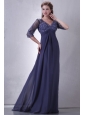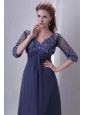 Empire V-neck Chiffon Appliques with Beading Prom Dress with 3/4 Sleeves