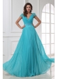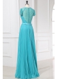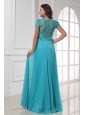Empire V-neck Floor-length Beading Cap Sleeves Prom Dress with Pleats