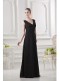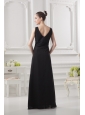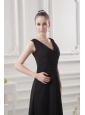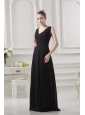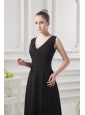 Empire V-neck Floor-length Ruching Black Prom Dress