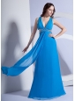 If you're looking for a great dancing dress, look no further. This one will have you saying cha cha cha in no time. The deep V- neck with two straps crossed in the open back and an asymmetrical X shap with beading drenched to shine your sexy, slim figure. The underskirt is floor length and flowy for the chiffon fabric. Be sexy and be the dancing queen!