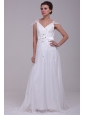 Empire V-Neck Floor-length Zipper Up Wedding Dress with Beading