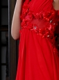 Empire V-neck Red Chiffon Floor-length Hand Made Flowers Side Zipper Prom Dress