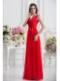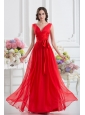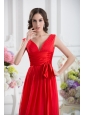 Empire V-neck Ruching Sashes Chiffon Prom Dress with Wine Red