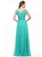 Empire V-neck Turquiose Chiffon Ruching 2014 Prom Dress