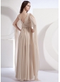 Empire V-neck Watteau Chiffon Prom Dress Champagne