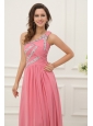 Empire Watermelon One Shoulder Beaded Decorate Full Length Prom Dress