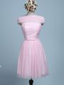 Empire Wedding Guest Dresses Baby Pink Strapless Tulle Sleeveless Mini Length Side Zipper
