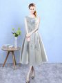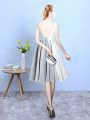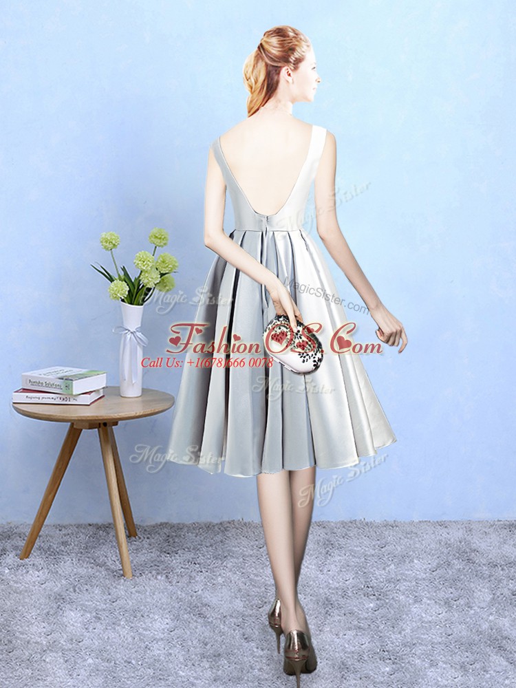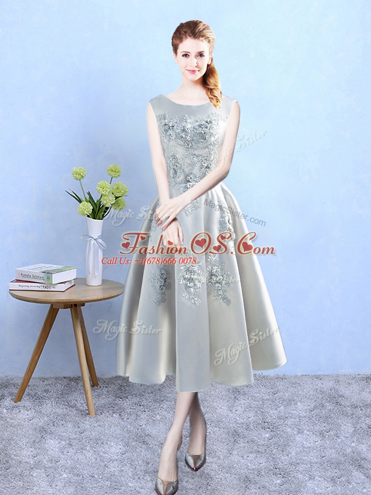 Enchanting A-line Quinceanera Dama Dress Silver Scoop Satin Sleeveless Tea Length Backless