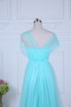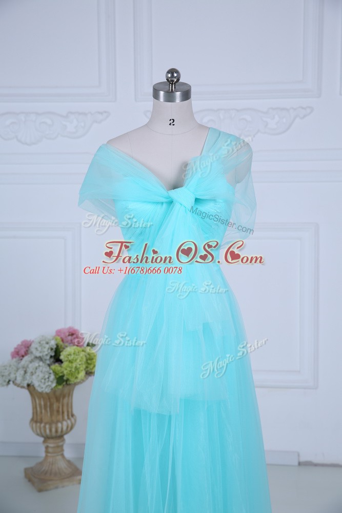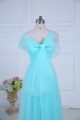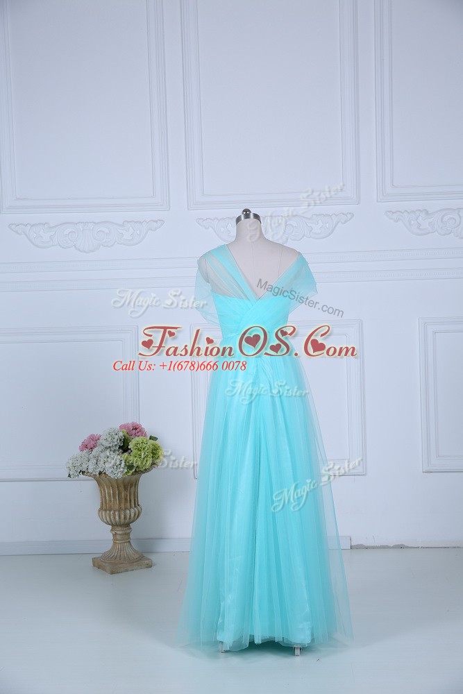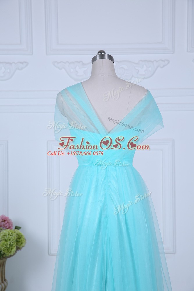 Enchanting Aqua Blue Empire Tulle Straps Sleeveless Ruching Floor Length Zipper Quinceanera Court Dresses