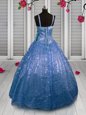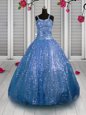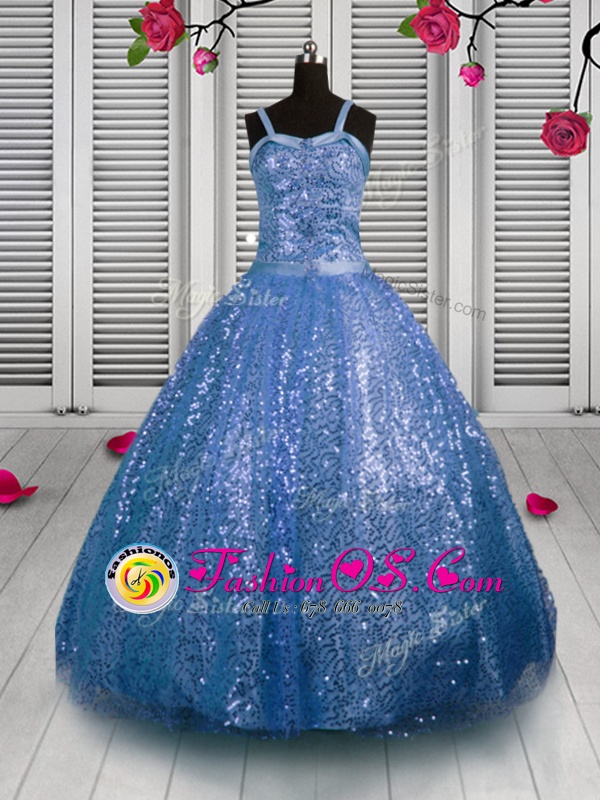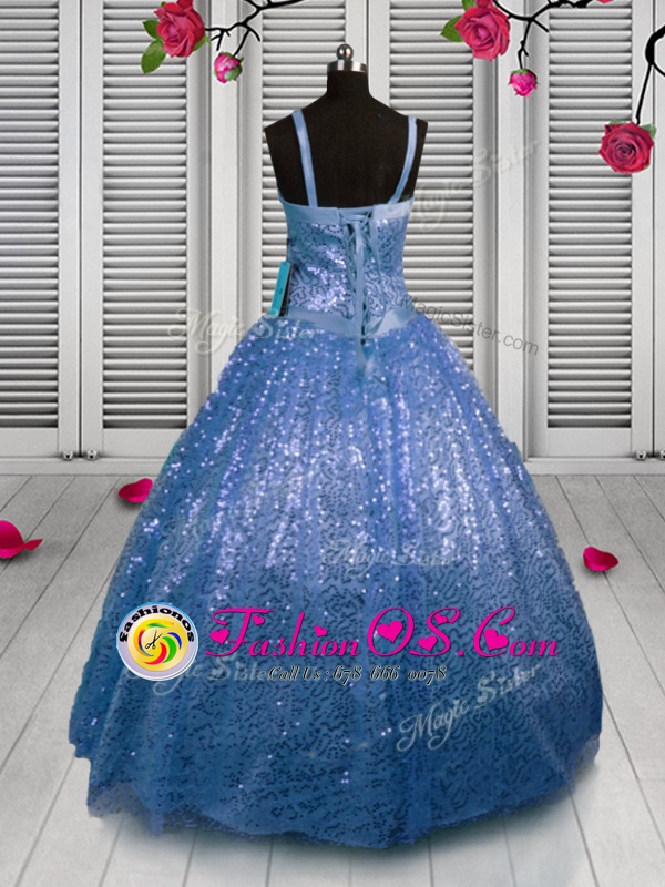 Home >  Special Occasion Dresses >  New Style Little Girl Pageant Dresses > Enchanting Baby Blue Girls Pageant Dresses Party and Wedding Party and For with Sequins Straps Sleeveless Lace Up