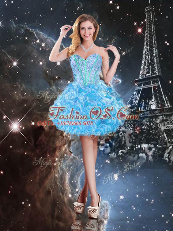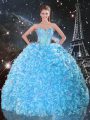 Home >  Quinceanera Dresses >  Detachable Quinceanera Skirts > Enchanting Baby Blue Lace Up Quinceanera Dresses Beading and Ruffles Sleeveless Floor Length