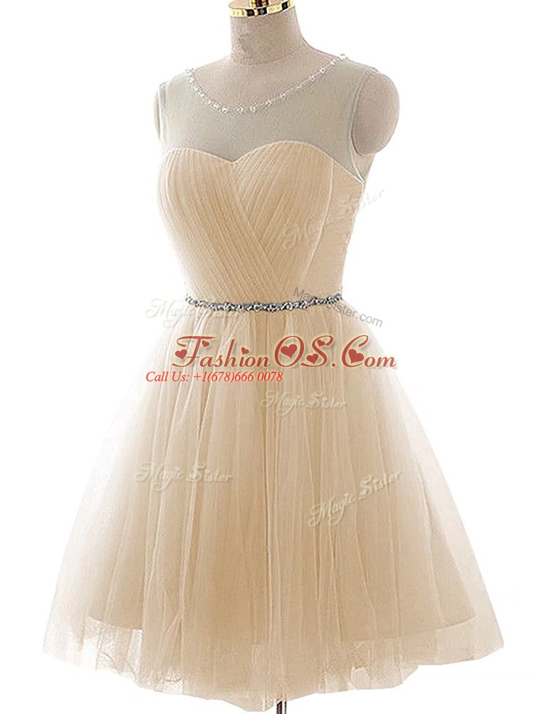 Home >  Prom Dresses >  Christmas Party Dresses > Enchanting Champagne Sleeveless Floor Length Beading and Ruching Lace Up Party Dress for Girls