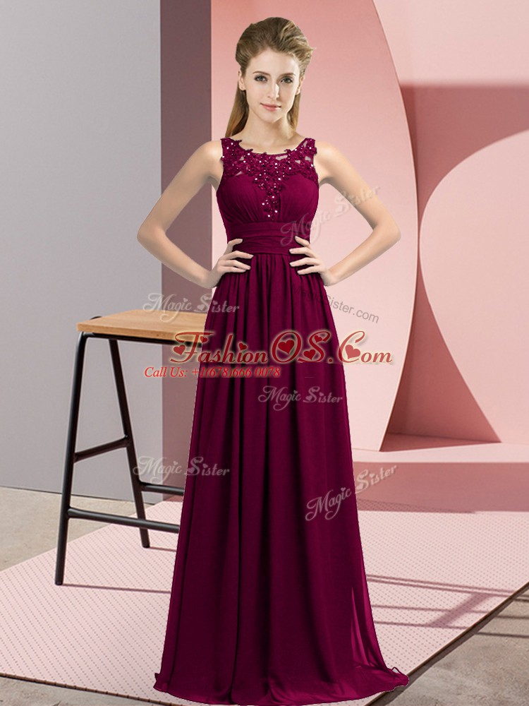 Enchanting Chiffon Sleeveless Floor Length Quinceanera Court Dresses and Beading and Appliques
