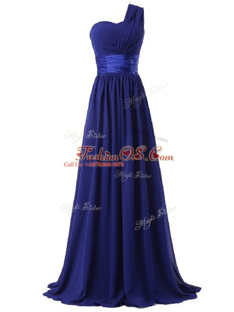 Enchanting Floor Length Royal Blue Court Dresses for Sweet 16 Chiffon Sleeveless Ruching