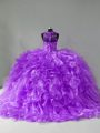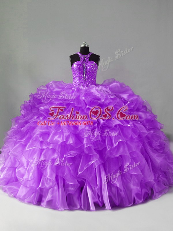 Enchanting Halter Top Sleeveless Brush Train Zipper Vestidos de Quinceanera Purple Organza