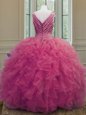 Enchanting Hot Pink Sleeveless Beading and Ruffles Floor Length Quinceanera Dresses