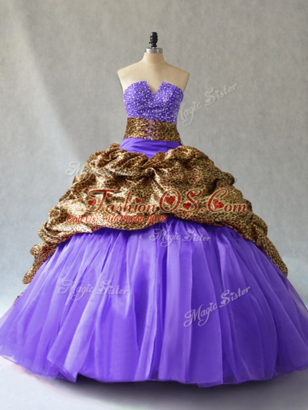 Enchanting Lace Up Quinceanera Gowns Lavender for Sweet 16 and Quinceanera with Beading and Pick Ups Brush Train