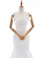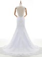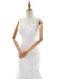 Enchanting Mermaid White Backless Straps Beading and Lace Wedding Dresses Lace Sleeveless Court Train