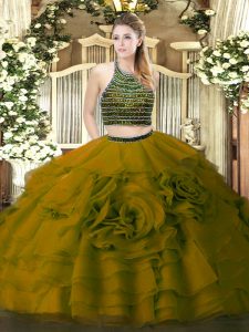 Home >  Quinceanera Dresses >  Pretty Quinceanera Dresses > Enchanting Olive Green Zipper 15th Birthday Dress Beading and Ruffled Layers Sleeveless Floor Length