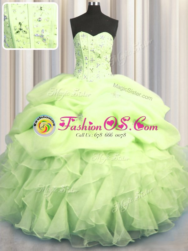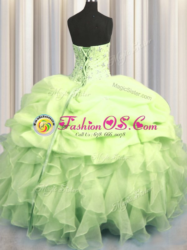 Home >  Quinceanera Dresses >  In Stock Quinceanera Dresses > Enchanting Pick Ups Visible Boning Floor Length Ball Gowns Sleeveless Yellow Green Sweet 16 Dress Lace Up