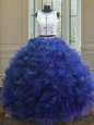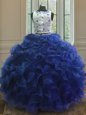 Enchanting Royal Blue Sweet 16 Dresses Military Ball and Sweet 16 and Quinceanera and For with Appliques and Ruffles Scoop Sleeveless Clasp Handle