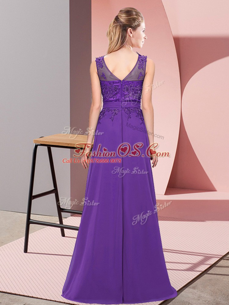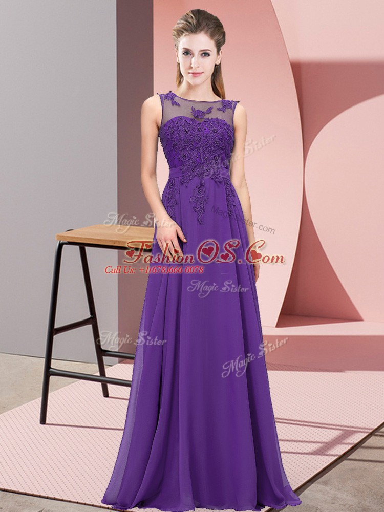 Enchanting Scoop Sleeveless Zipper Dama Dress Purple Chiffon