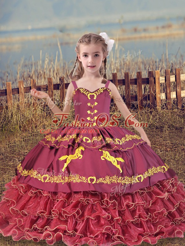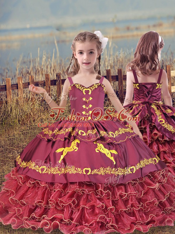 Enchanting Sleeveless Lace Up Floor Length Beading and Embroidery and Ruffled Layers Little Girl Pageant Dress