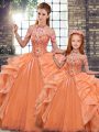 Enchanting Sleeveless Organza Floor Length Lace Up Quinceanera Dress in Orange with Beading and Ruffles