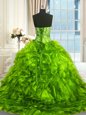 Enchanting Sweetheart Sleeveless Organza Ball Gown Prom Dress Beading and Ruffles Brush Train Lace Up