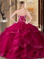 Enchanting Sweetheart Sleeveless Quinceanera Gown Floor Length Embroidery and Ruffles Coral Red Tulle