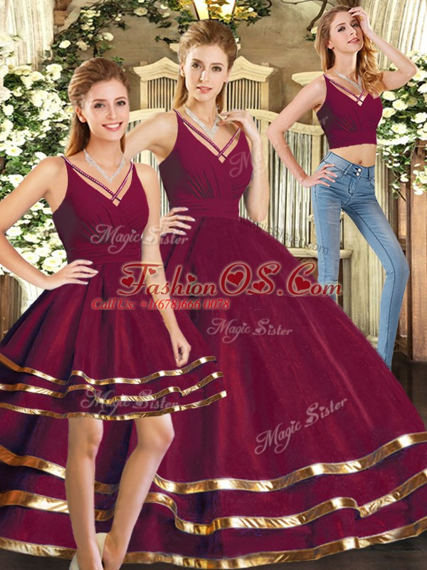 Enchanting Tulle Sleeveless Floor Length Quinceanera Dresses and Ruffled Layers