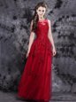 Enchanting Wine Red Empire Scoop Sleeveless Tulle Floor Length Side Zipper Appliques Prom Dress