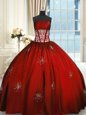 Home >  Quinceanera Dresses >  15 Quinceanera Dresses > Enchanting Wine Red Taffeta Lace Up Strapless Sleeveless Floor Length Ball Gown Prom Dress Beading and Appliques and Ruching