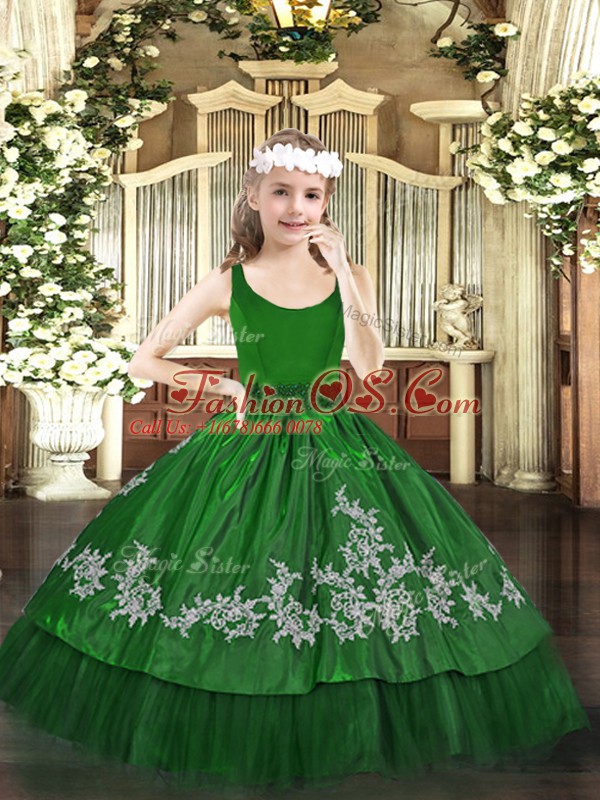 Home >  Special Occasion Dresses >  Beautiful Kids Pageant Dresses > Excellent Floor Length Dark Green Evening Gowns Scoop Sleeveless Zipper