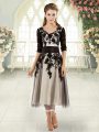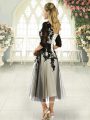 Excellent Half Sleeves Lace Up Tea Length Appliques Prom Evening Gown