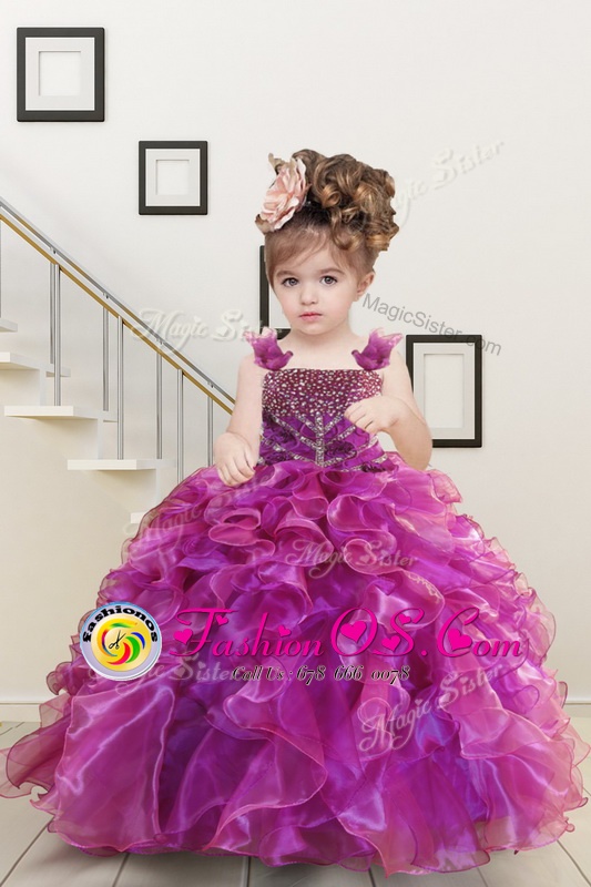 Home >  Special Occasion Dresses >  Mini Quinceanera Dresses > Excellent Mermaid Floor Length Lace Up Kids Formal Wear Fuchsia and In for Military Ball and Sweet 16 and Quinceanera with Beading and Ruffles