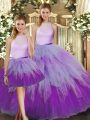 Excellent Multi-color High-neck Backless Ruffles Quinceanera Gowns Sleeveless