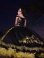 Home >  Quinceanera Dresses >  Discount Quinceanera Dresses > Excellent Off the Shoulder Ruffled Floor Length Ball Gowns Sleeveless Black Ball Gown Prom Dress Lace Up