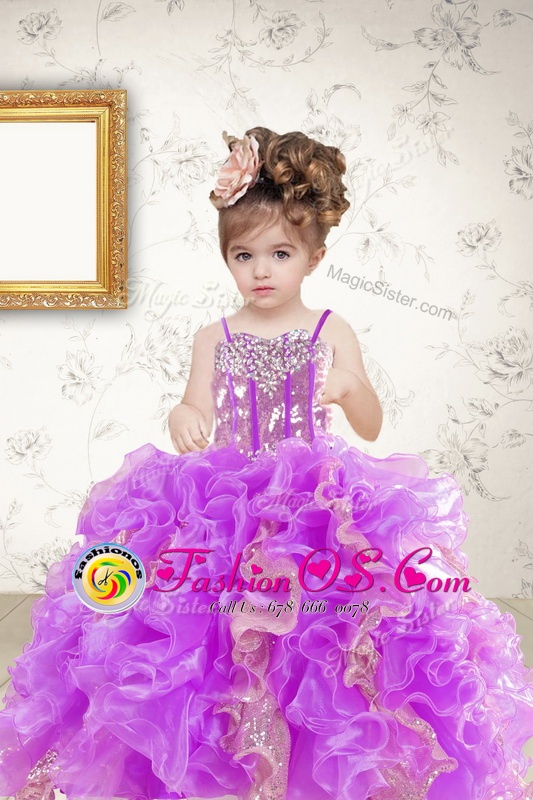 Home >  Special Occasion Dresses >  New Style Little Girl Pageant Dresses > Excellent Purple Sleeveless Beading and Ruffles Floor Length Little Girl Pageant Dress