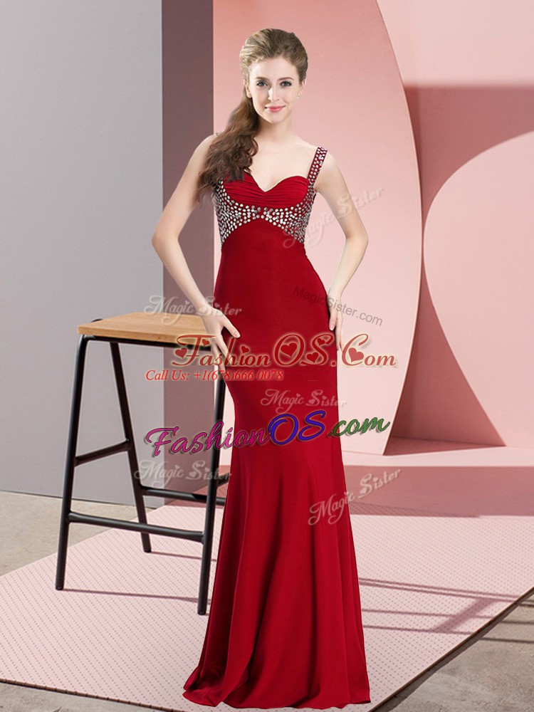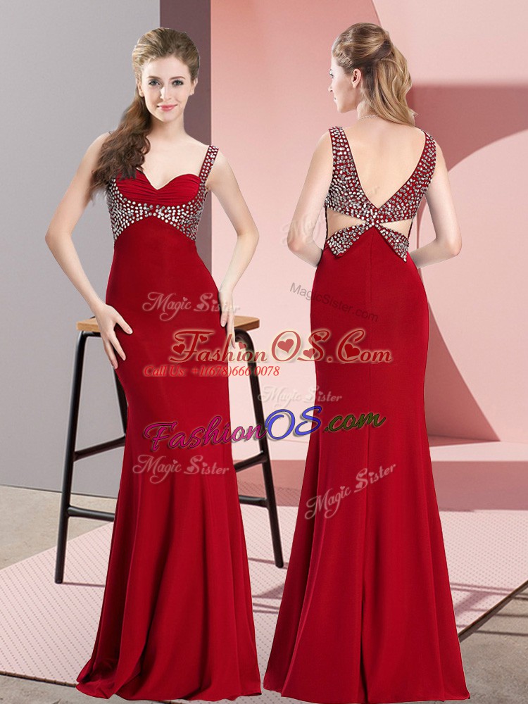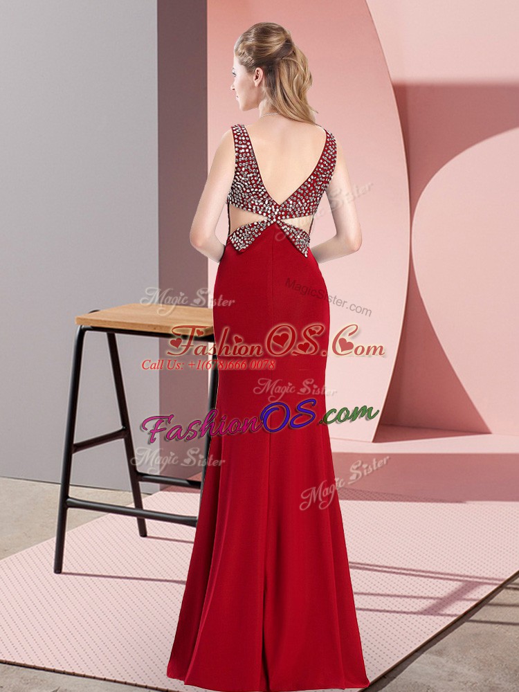 Excellent Red Sleeveless Beading Floor Length Homecoming Dress