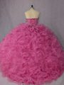 Excellent Rose Pink Halter Top Lace Up Beading and Ruffles Quinceanera Dresses Brush Train Sleeveless