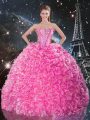 Excellent Rose Pink Organza Lace Up Sweetheart Sleeveless Floor Length Quinceanera Gowns Beading and Ruffles