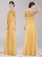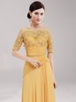 Excellent Scoop Gold Half Sleeves Appliques and Belt Floor Length Dress for Prom