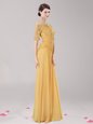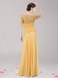 Home >  Prom Dresses >  Sexy Prom Dresses > Excellent Scoop Gold Half Sleeves Appliques and Belt Floor Length Dress for Prom