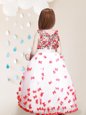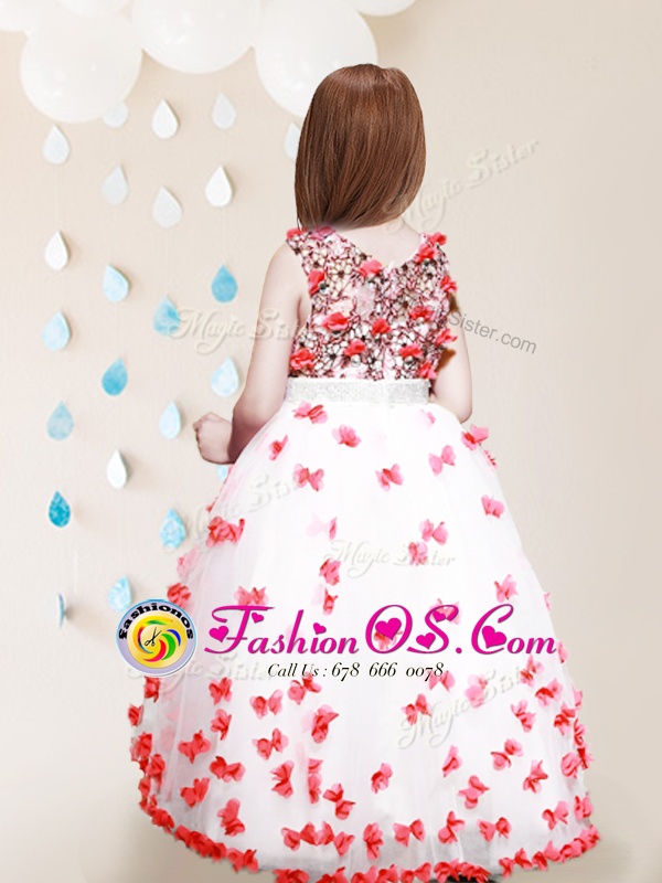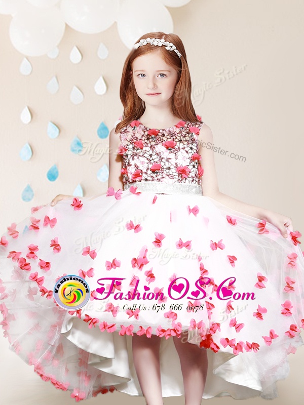 Excellent Scoop Sleeveless High Low Lace and Appliques Zipper Flower Girl Dress with White And Red