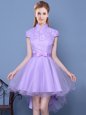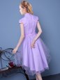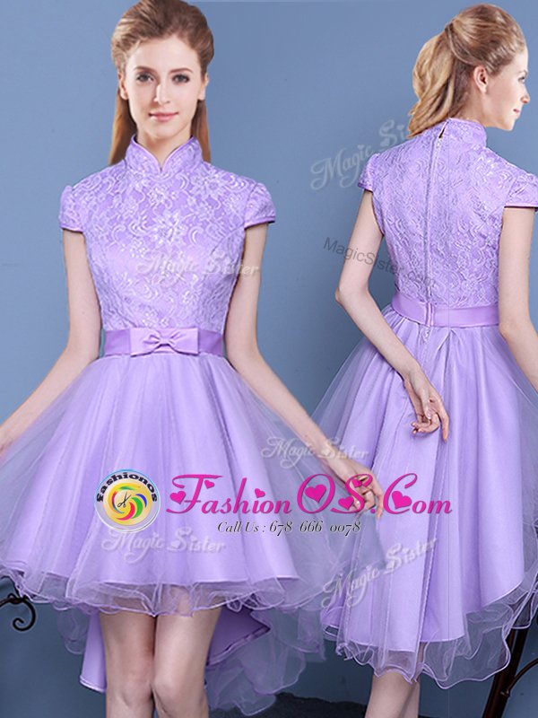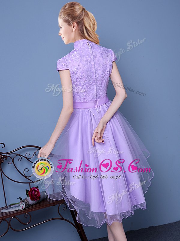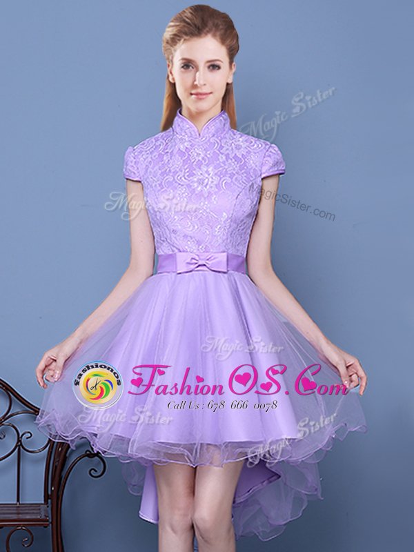 Excellent Short Sleeves Lace and Bowknot and Belt Zipper Quinceanera Dama Dress