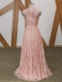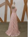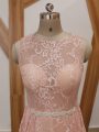 Excellent Sleeveless Floor Length Beading Zipper Evening Dress with Pink Brush Train