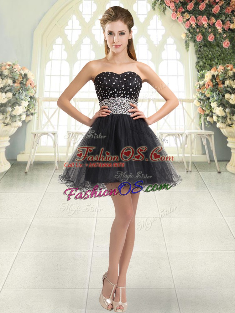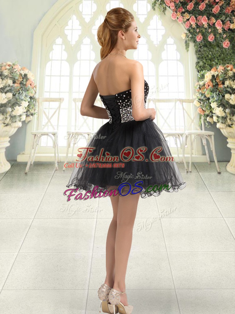 Home >  Prom Dresses >  Perfect Prom Dresses > Excellent Sleeveless Tulle Mini Length Lace Up Homecoming Dress in Black with Beading