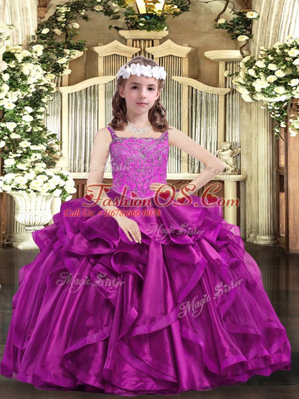 Home >  Special Occasion Dresses >  Lovely Little Girl Pageant Dresses > Excellent Straps Sleeveless Organza Little Girl Pageant Gowns Beading and Ruffles Lace Up
