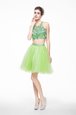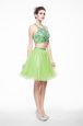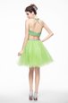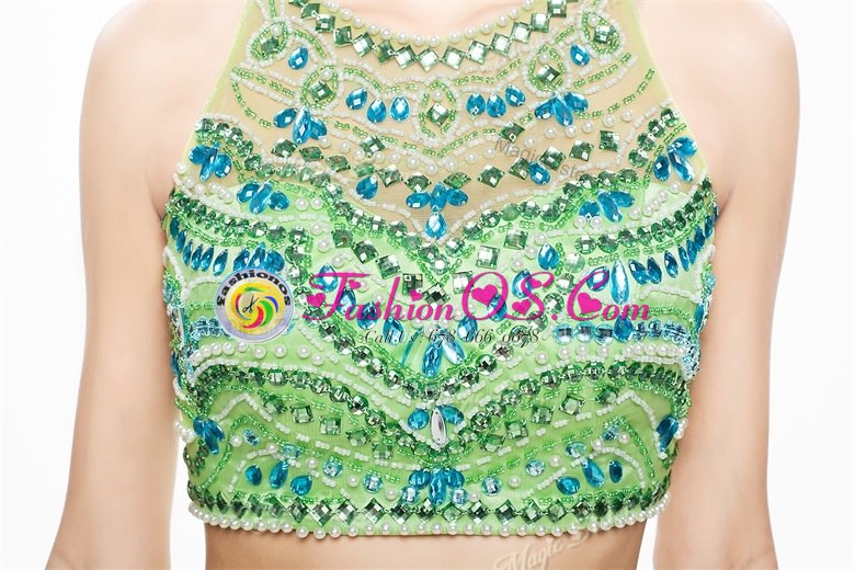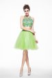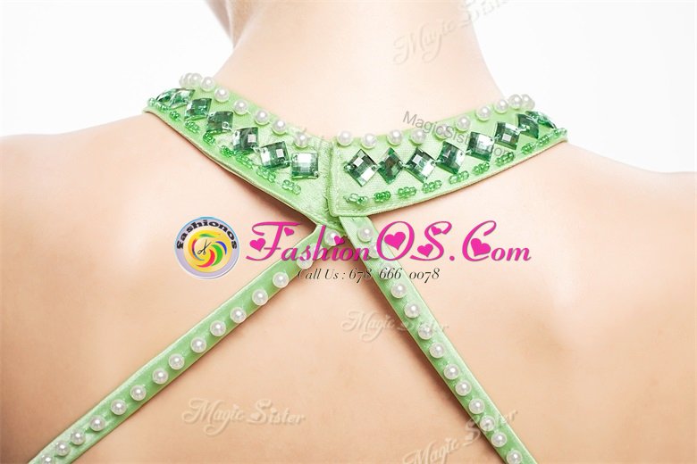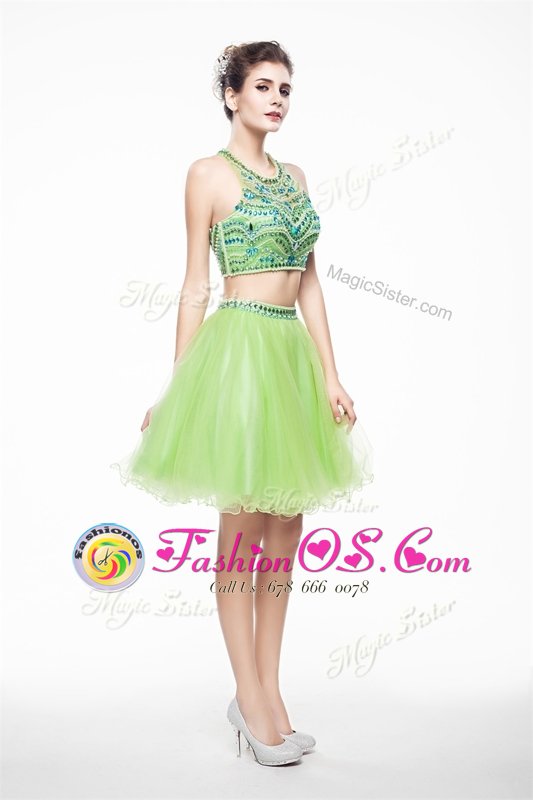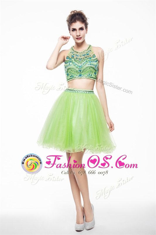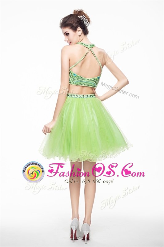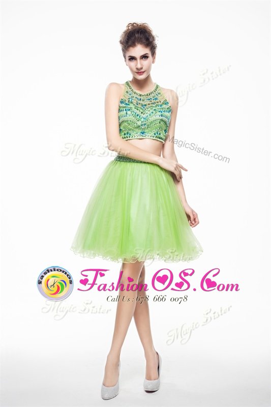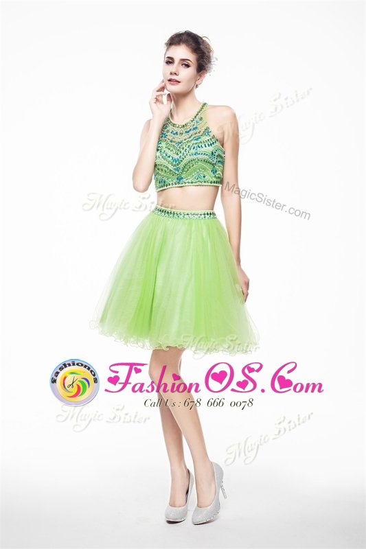 Exceptional A-line Chiffon Scoop Sleeveless Beading Knee Length Backless Cocktail Dress